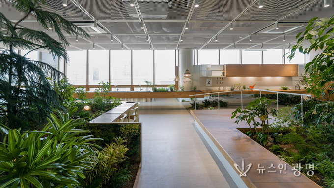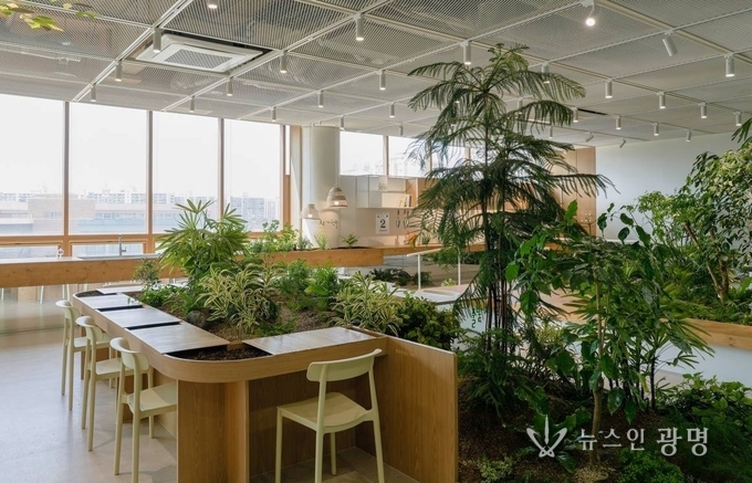 ‘소하담숲’은 2025년 6월 광명시립소하노인종합복지관 4층에 조성된 실내형 다감각 치유정원이다. 초고령사회의 주요 과제인 어르신 인지 건강 문제를 해결하기 위해 자연 요소를 실내로 끌어들여 정서 회복을 돕는 ‘바이오필릭(Biophilic, 자연 친화) 디자인’을 적용했다.