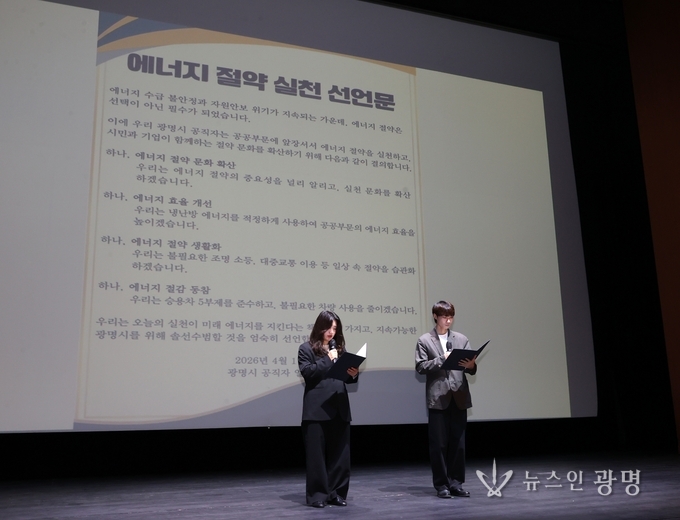 시는 1일 오전 광명시민회관에서 열린 ‘직원 소통의 날’에서 전 공직자가 참여하는 에너지 절약 실천 결의대회를 개최하고, 에너지 절약 실천 선언문을 낭독했다.