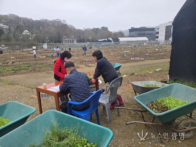 광명시는 지난 11일 밤일주말농장과 애기능주말농장에서 텃밭 참여 가족을 대상으로 진행한 ‘사랑의 채소 모종 나눔 행사’를 마쳤다.
