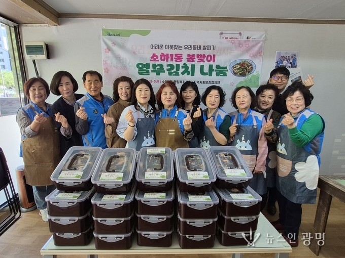 광명시 소하1동 지역사회보장협의체(위원장 박종숙)는 24일 우리 동네 형편이 어려운 이웃을 위한 ‘봄맞이 열무김치 나눔 행사’를 열었다.