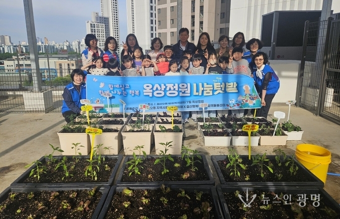 광명시 철산2동 지역사회보장협의체(위원장 박영하)는 지난 23일 동 행정복지센터 옥상에서 철산누리 다함께돌봄센터 아이들과 ‘옥상정원 나눔텃밭’ 사업을 진행했다.