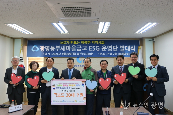 4월 30일(목), 광명동부새마을금고(이사장 한상구)는 광명시사회복지협의회(회장 이상재) 광명희망나기운동사업(이하 광명희망나기운동본부)에 어린이날을 기념하여 킥보드 30대를 후원하고, ‘2026 광명사랑 기부릴레이’를 통해 세탁세제도 함께 지원했다.