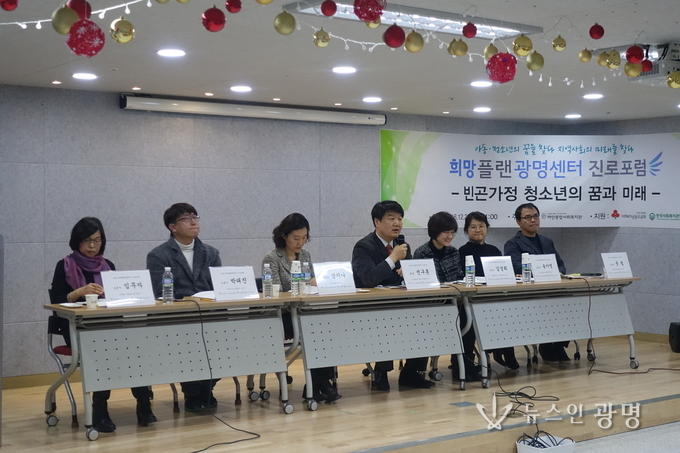 2016년 12월 23일(금)에는 빈곤의 대물림이 청소년과 청년들의 진로준비에 미치는 영향과 희망플랜광명센터가 나아가야 할 방향을 모색하고자 ‘빈곤가정 청소년의 꿈과 미래’라는 주제로 진로포럼을 개최하였다. 이날 진로포럼에는 김성태 도의원, 조화영 시의원, 안성환 시의원 및 지역사회의 많은 유관기관 직원, 관련 분야 전문가, 지역주민 등 80여명이 참석한 가운데 진행되었다.
