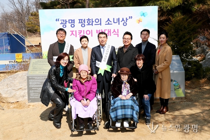 양기대 광명시장은 일제강점기 수탈과 징용의 현장인 광명동굴 입구에 시민 성금으로 설치된 ‘광명 평화의 소녀상’ 앞에서 ‘광명 평화의 소녀상 지킴이’ 발대식을 열고, 중·고등학생 34명에게 위촉장을 수여했다. 이날 위촉식에는 광주 나눔의 집에 거주하는 이옥선(91), 박옥선(94) 일본군 위안부 피해 할머니와 안신권 소장, 영화 ‘귀향’의 조정래 감독, 광명평화의소녀상 참뜻계승관리위원회 고완철 위원장, 시민 등 100여명이 참석했다.