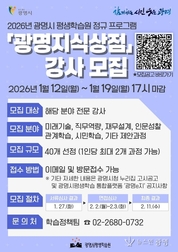 - 미래기술·직무역량 등 7개 분야 40여 명 선발… 1월 19일까지 접수 - 전문성과 실무경력 갖춘 강사진 모집 통해 시민의 배움과 성장 지원 광명시(시장 박승원) 평생학습원이 시민 맞춤형 평생학습 프로그램 ‘광명지식상점’을 운영할 2026년도 전문 교육 강사를 공개 모집한다. ‘광명지식상점’은 시민의 삶과 밀접한 주제를 중심으로 배움과 성장을 지원하는 광명시 대표 평생학습 프로그램이다. 2026년에는 ▲미래기술 ▲직무역량 ▲재무설계 ▲인문성찰 ▲관계학습 ▲시민학습 ▲기타 제안과정 등 7개 분야에서 강사를 선발해 시민들에게 다채로운 교육 서비스를 제공할 예정이다. 지원 자격은 해당 모집 분야의 전문성을 보유하고 관련 자격증과 실무경력을 모두 갖춘 자에 한한다. 시는 강의 경력, 강의계획서, 자기소개서 등을 바탕으로 1차 서류심사를 진행한 뒤, 수업 시연과 질의응답으로 구성된 2차 면접심사를 거쳐 최종 40여 명의 강사를 선발할 계획이다. 접수는 오는 12일부터 19일 17시까지 이메일(limp86@korea.kr) 또는 평생학습원 2층 사무실 방문을 통해 가능하다. 제출 서류 등 세부 사항은 광명시 평생학습플랫폼 ‘광명이(e)지’(LLL.gm.go.kr)
