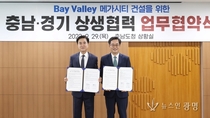 경기도와 충청남도가 충남이 추진 중인 베이밸리메가시티 조성, 평택과 아산·천안을 잇는 순환철도 건설과 평택·당진항에 대중국 수출기지 육성, 서해안 해안쓰레기 공동 처리 등 양 지역 상호발전을 위한 9개 항에 합의했다. 김동연 경기도지사와 김태흠 충남도지사가 29일 오전 충남도청에서 만나 이런 내용을 담은 ‘경기-충남 상생협력 업무협약서’에 서명했다. 이날 업무협약은 민선8기 김동연 지사 취임 후 광역지방자치단체 간 처음으로 맺는 업무협약이다. 경기도는 민생현안 해결과 지역발전을 위해 두 도지사가 진영을 떠나 협의하기로 뜻을 모았다는 점에서 의미가 있다고 설명했다. 김동연 경기도지사는 “김태흠 지사께서 베이밸리 메가시티 구상을 먼저 제안해 주셨는데 충남과 경기도가 상생번영할 수 있는 바람직한 길이라고 생각해 흔쾌히 함께 하기로 했다”며 “오늘 협약을 계기로 구체적이고 작은 것부터 성과를 냈으면 한다. 경기 남부지역은 반도체클러스터와 각종 첨단산업이 자리잡은 곳이어서 충남의 여러 가지 성장 잠재력과 결합이 된다면 좋은 시너지를 낼 수 있을 것 같다”고 말했다. 이어 “베이밸리 메가시티와 관련해 혁신생태계를 만들려면 첫째, 인재와 포용성 기술의 결합, 두 번째는
