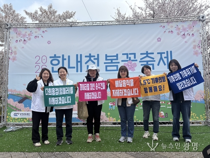 시는 지난 11일 ‘2026 한내천 봄꽃축제’에서 1.5℃ 기후의병 20명이 참여한 가운데 ‘2026 탄소중립 실천 모니터링’을 실시했다.